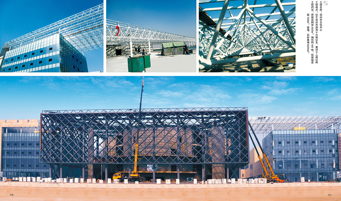 焊接球網(wǎng)架6500m2,鋼結(jié)構(gòu)450噸,鋁鎂錳屋面7000m2,玻璃、石材幕墻80000m2。
