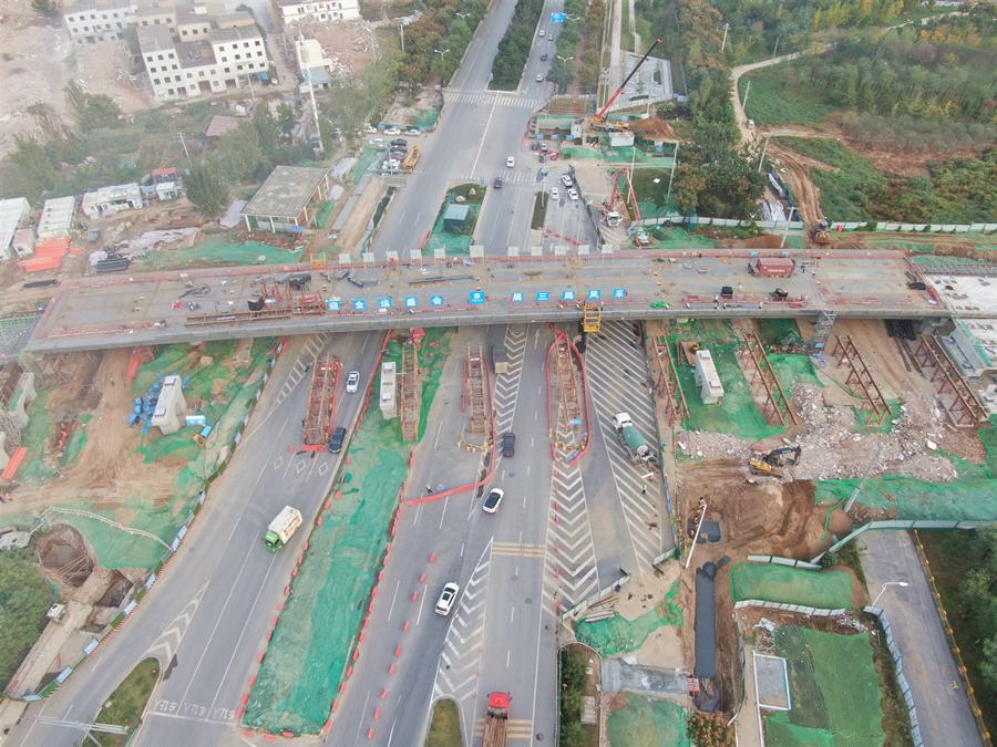 我方承建的二標(biāo)段西起灞河?xùn)|路以東,東至香槐六路,主線總長1331m,起訖樁號為K1+600~K2+931,其中隧道道段總長223m,U型槽217m,橋梁段總長為672m,總用鋼量5100噸。