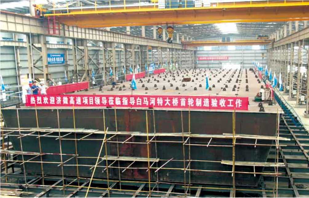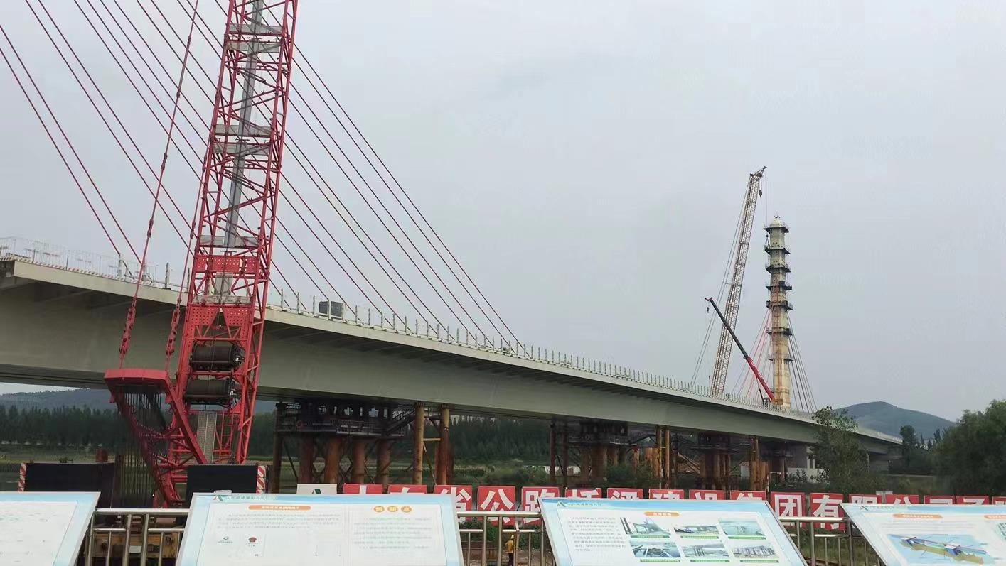 白馬河特大橋是濟(jì)南至微山公路、濟(jì)寧新機(jī)場至棗荷高速段項目的控制性工程之一。該橋主跨240米,是山東省內(nèi)跨徑最大的中央雙索面 矮塔斜拉橋。鋼橋總用鋼量14000噸。