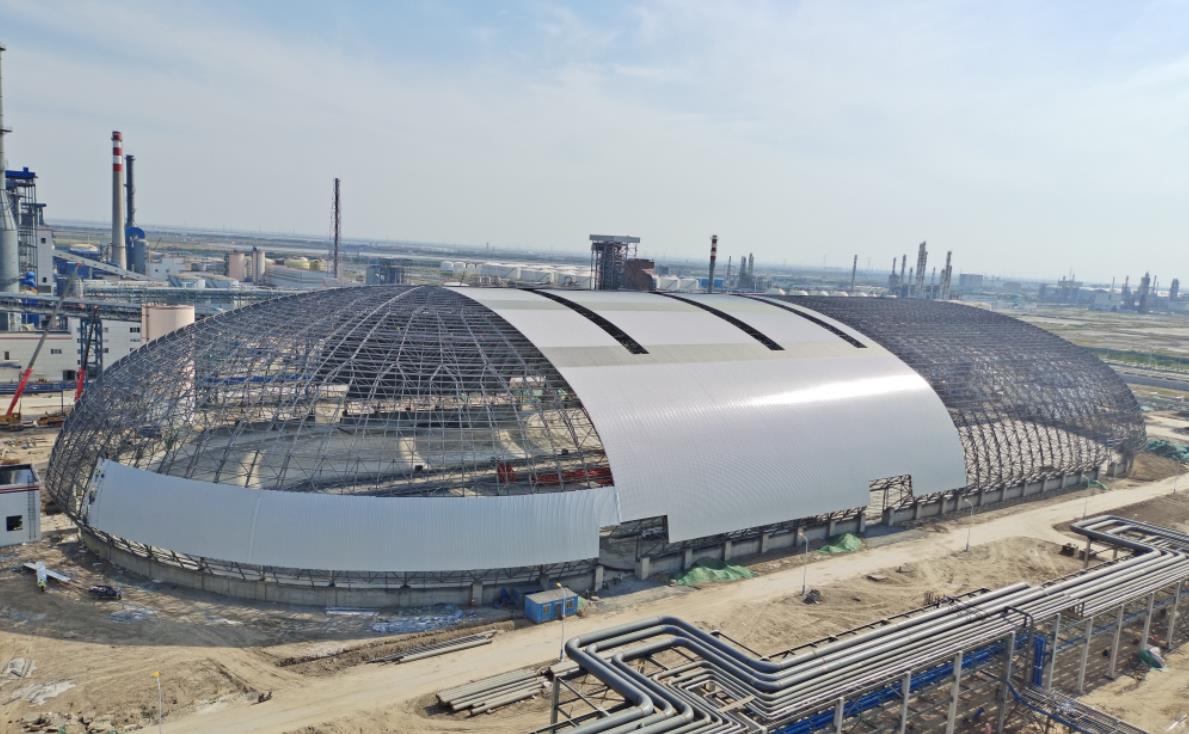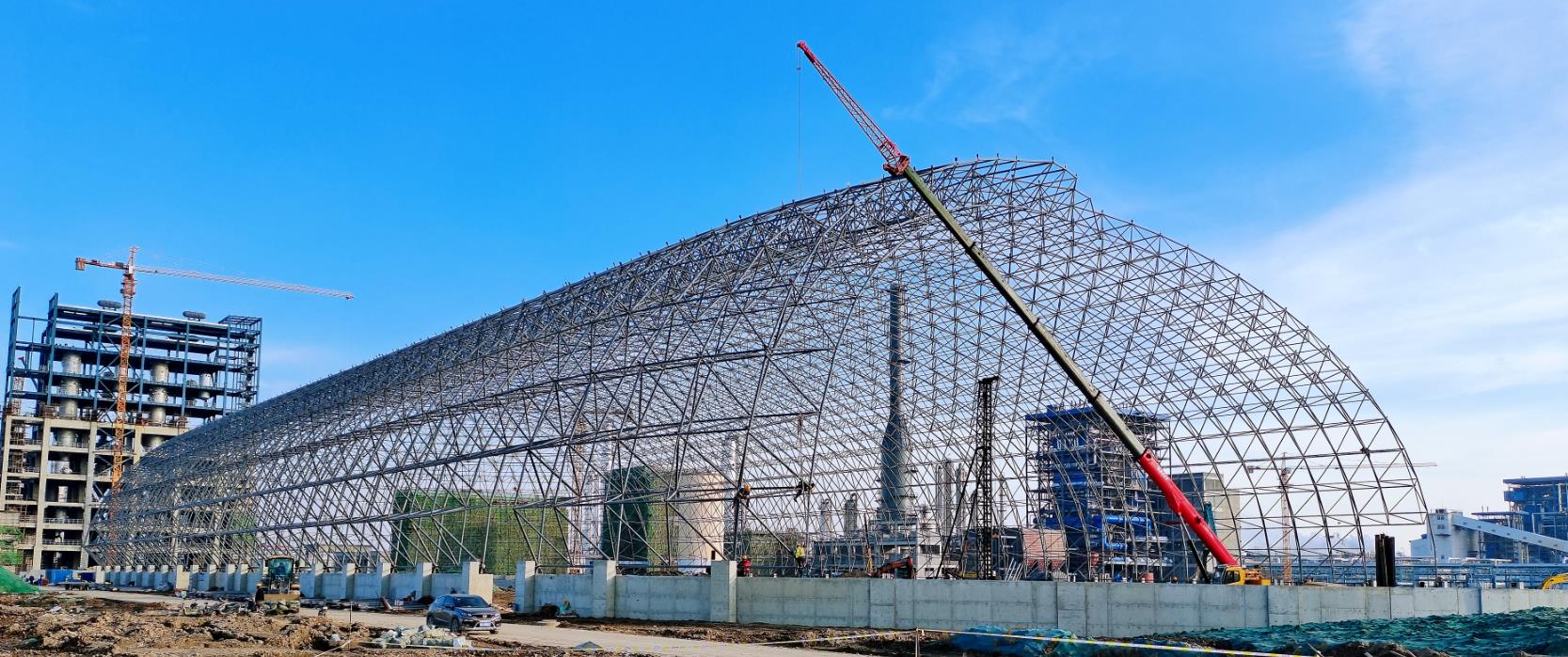 網(wǎng)架展開面積為37365平方米,投影面積為28210.11平方米,建筑高度38.65米。軸線寬度為110米,長度為256米,網(wǎng)架用鋼量為1186噸。