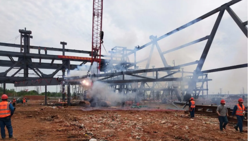 4月20日,伴隨著響亮喜慶的鞭炮聲,公司承建項(xiàng)目安慶會展中心第一榀屋面梁緩緩起吊,標(biāo)志著安裝工程正式開始。
