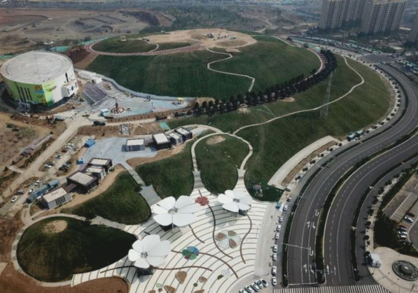 泰安市新體育場項目位于粥頂山路以西,北隔天平湖路與泮河相鄰,總建筑面積約42萬平方米,主要包含體育綜合體“一場三館”、新體校、景觀公園三大功能區(qū)?!耙粓鋈^”包括體育場、綜合體育館、游泳跳水館和全民健身館各一座