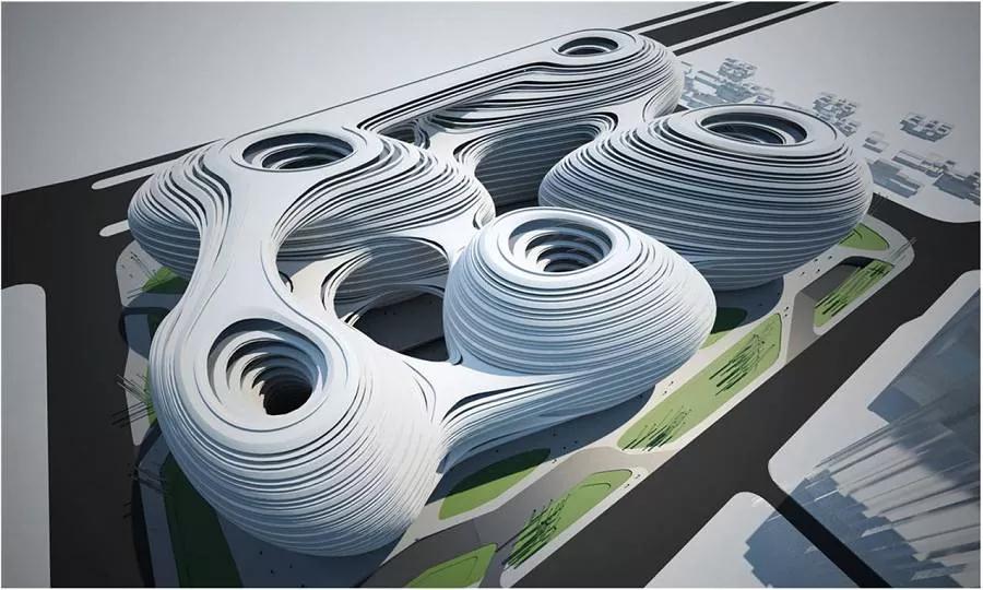 在建筑領域中,黎曼幾何在扎哈的建筑作品運用的比較多。擅長用曲線做設計的扎哈,她的作品總是會帶給人極強的視覺沖擊力,人們往往驚嘆于建筑靈動而和諧的美感。其實,扎哈是將由黎曼幾何得來的“葉狀結(jié)構(gòu)”在建筑上做了各種創(chuàng)作。