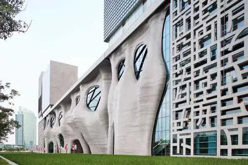 磯崎新的團隊所設計的卡塔爾國際會議中心和上海喜馬拉雅中心的公共空間,將“拓撲優(yōu)化”做了很好的詮釋。不僅滿足建筑的功能需求、結(jié)構(gòu)的力學性能,而且結(jié)合建筑的審美,形成了極具震撼力的建筑。
