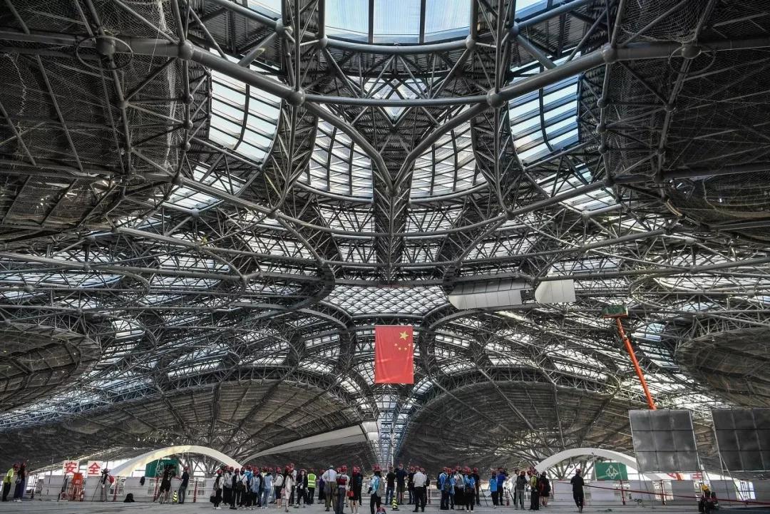 三塊馬鞍面殼靠在一起,中間通過鋼桁架相連,形成透明光帶,像森林里的一頂白帽子。