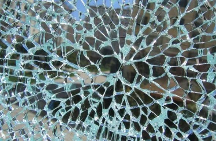 ▲自爆后的鋼化玻璃