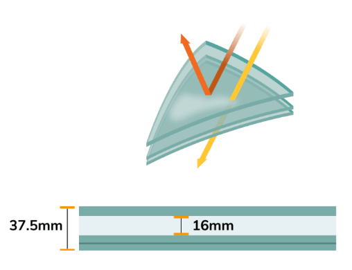 第一層玻璃與底下兩層玻璃之間有16毫米的間距