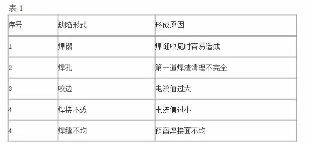 桿件鋼管與封板或錐頭焊接時可能出現(xiàn)各種形式的質(zhì)量缺陷,如焊鎦、焊孔、咬邊、焊接不透、焊縫不均勻等,應(yīng)針對不同的缺陷分析原因,再根據(jù)形成的原因逐個整改。經(jīng)過實踐總結(jié),形成以上質(zhì)量缺陷的主要原因如表1: