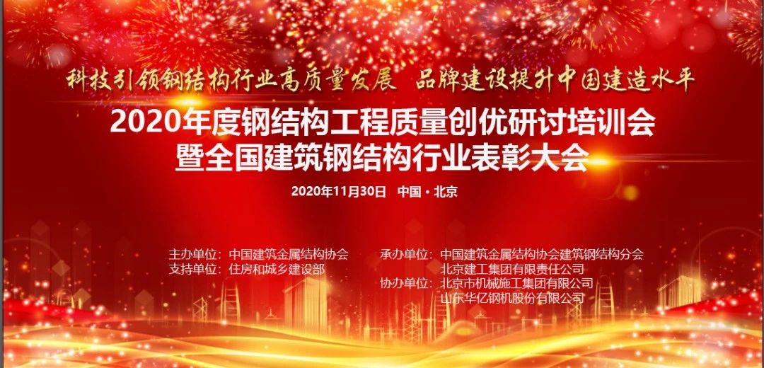為全面提升鋼結(jié)構(gòu)的工程質(zhì)量安全水平,總結(jié)推廣創(chuàng)建精品鋼結(jié)構(gòu)工程的先進(jìn)經(jīng)驗(yàn),促進(jìn)鋼結(jié)構(gòu)行業(yè)高質(zhì)量發(fā)展,2020年度鋼結(jié)構(gòu)工程質(zhì)量創(chuàng)優(yōu)研討培訓(xùn)會暨全國建筑鋼結(jié)構(gòu)行業(yè)表彰大會于2020 年11月29日-30日(星期日-星期一)在北京順利召開。
