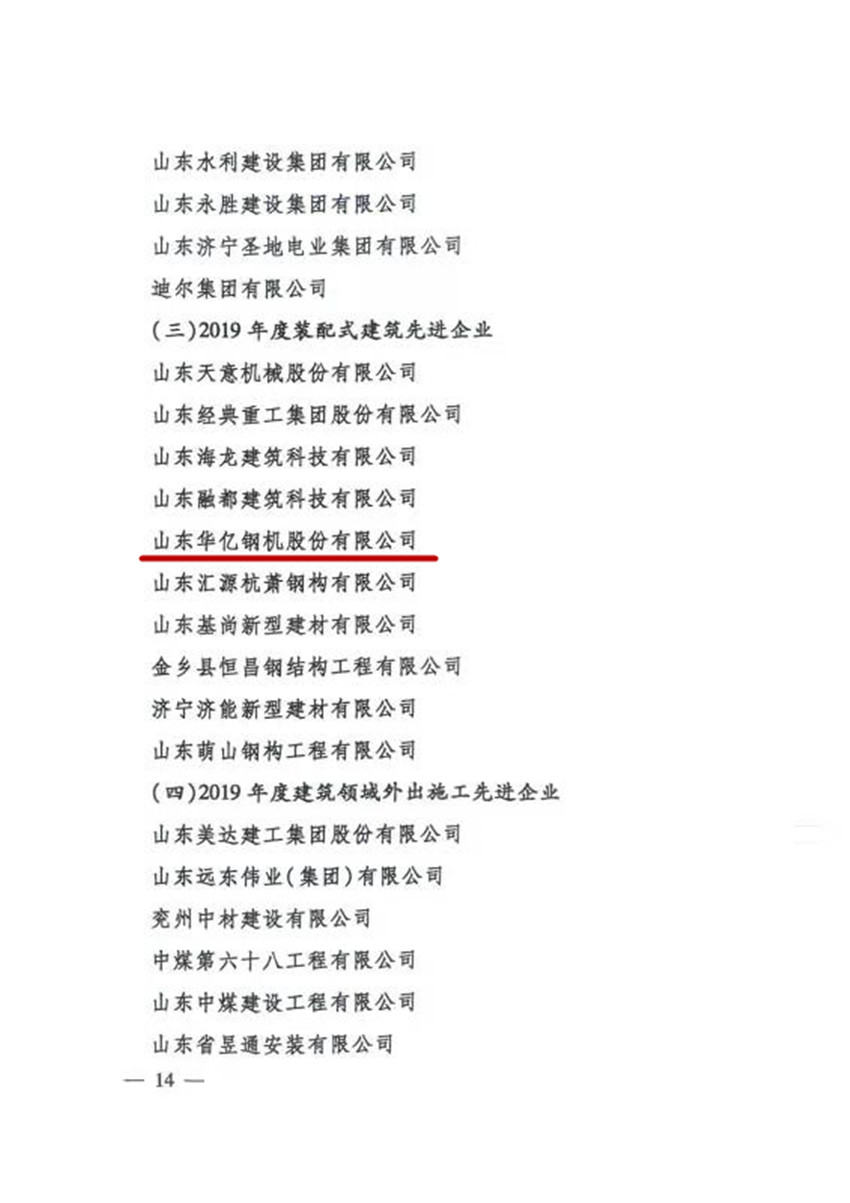 近日,公司再傳喜訊,華億鋼機(jī)被濟(jì)寧市委市政府授予“2019年度裝配式建筑先進(jìn)企業(yè)”,董事長(zhǎng)張猛被授予“2019年度優(yōu)秀企業(yè)家”,這是對(duì)我們公司成績(jī)的肯定,是華億人的榮耀,更是一種鞭策,督促我們?cè)俳釉賲?,勇攀高峰?/span>