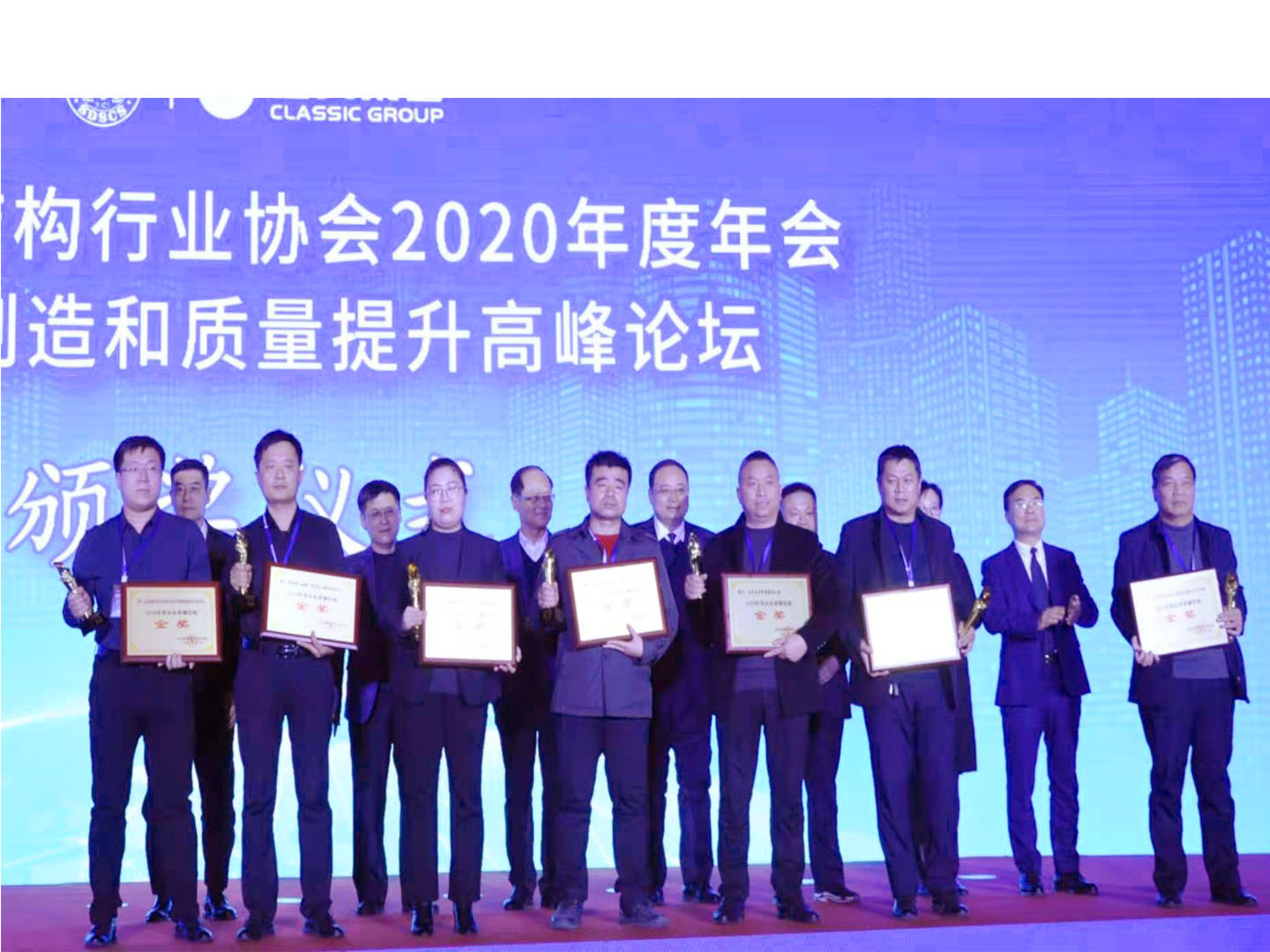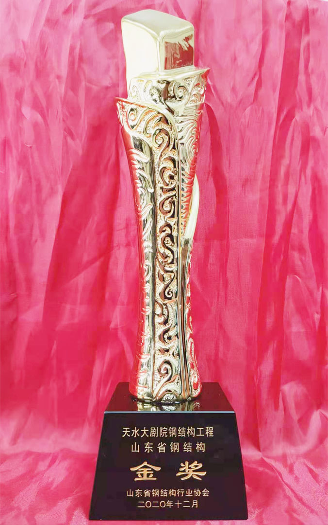 在頒獎儀式環(huán)節(jié),我公司榮獲三項大獎:公司承接的天水大劇院項目獲鋼結構金獎,鋼結構R角度精度控制QC成果獲優(yōu)秀成果獎,余剛獲優(yōu)秀項目經(jīng)理。
