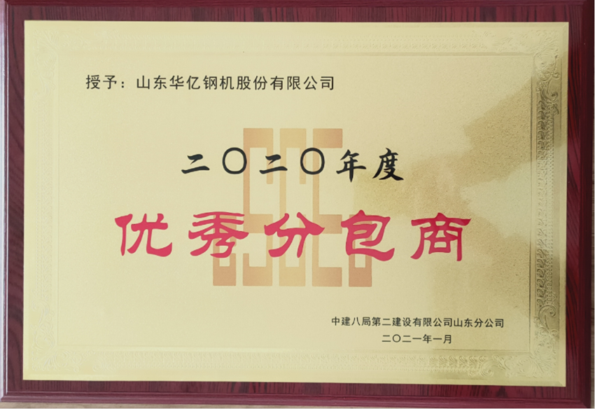 “誠信務(wù)實(shí),合作共贏”一直是每個(gè)華億人心中不變的理念。近日,我公司在泰安體育場(chǎng)項(xiàng)目中,被中建八局第二建設(shè)有限公司山東分公司授予“2020年度優(yōu)秀分包商”,高度彰顯了我公司的技術(shù)實(shí)力以及優(yōu)質(zhì)的服務(wù)能力,這也正是我公司堅(jiān)定不移踐行這一經(jīng)營理念的結(jié)果。經(jīng)過公司上下和合作方的共同努力,公司各項(xiàng)指標(biāo)再創(chuàng)歷史新高,繼續(xù)保持了持續(xù)穩(wěn)定健康發(fā)展的良好態(tài)勢(shì)。