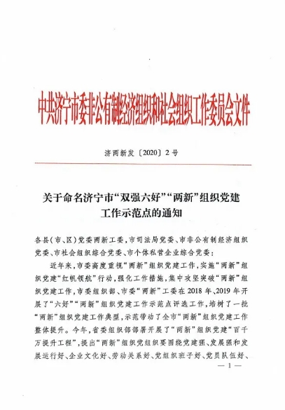 近日,我公司黨支部被濟(jì)寧市委組織部授予“雙強(qiáng)六好”“兩新”組織示范點(diǎn),這是在繼2020年7月公司黨支部書記楊鴻同志榮獲曲阜市“紅帆能手”后,華億鋼機(jī)在黨支部建設(shè)方面又獲得的一項濟(jì)寧市級榮譽(yù)。