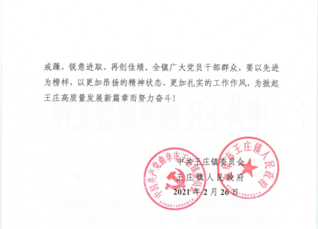 3月14日,曲阜市王莊鎮(zhèn)總結(jié)表彰暨重點(diǎn)工作攻堅(jiān)動(dòng)員大會(huì)召開(kāi)。鎮(zhèn)黨委書記王洪生出席會(huì)議并講話,黨委副書記、鎮(zhèn)長(zhǎng)李萌主持會(huì)議。企事業(yè)單位負(fù)責(zé)人等參加會(huì)議。我公司副總經(jīng)理?xiàng)铠櫟仁鼙碚玫拇韰⒓訒?huì)議。