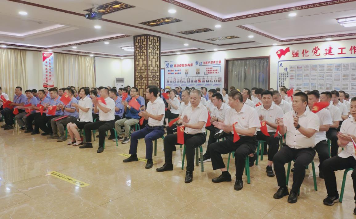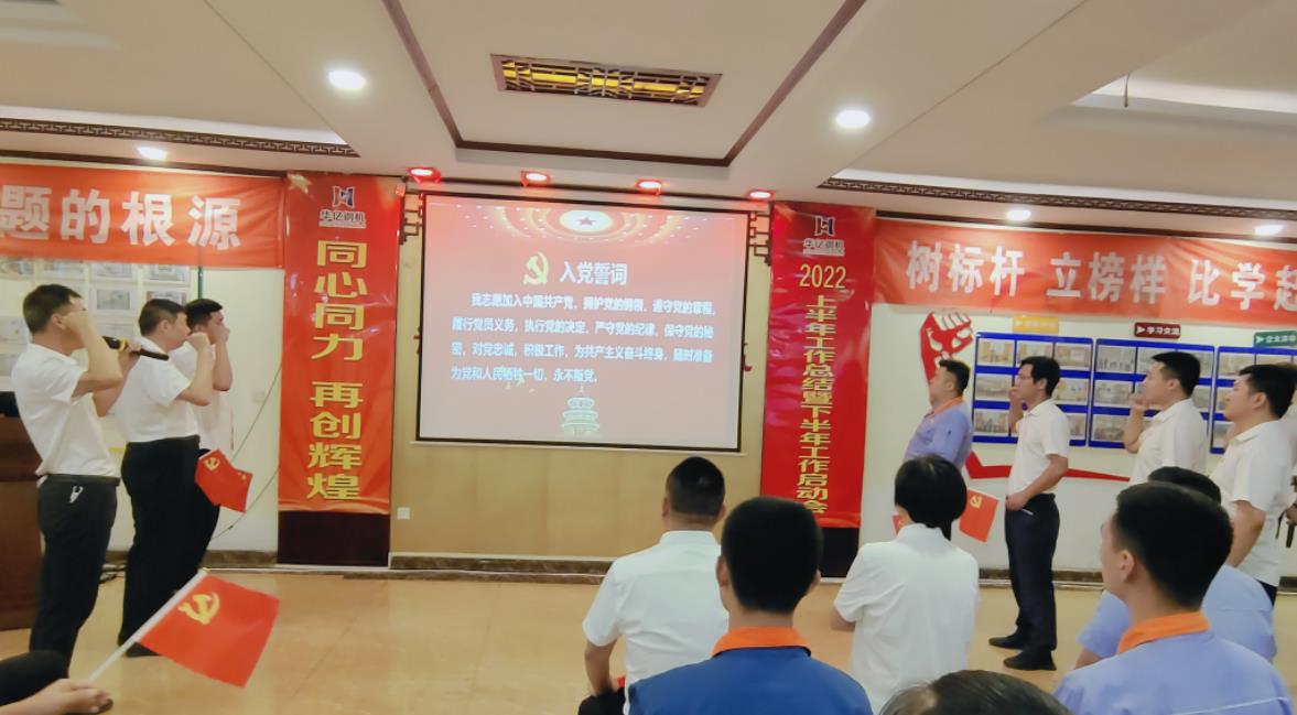 在公司黨支部書記、副總經理楊鴻領誓下,全體黨員佩戴黨徽,舉起右拳,面向黨旗重溫入黨誓言,進一步激勵和督促黨員,在任何情況下不忘身份,牢記信念,永葆共產黨員本質,充分發(fā)揮模范帶頭作用,鼓舞自己在工作中繼續(xù)奮發(fā)有為,不斷前進。宣誓后公司所有黨員為慶祝中國共產黨建黨101周年獻歌,一曲《我和我的祖國》讓人回想起了革命老前輩們的奮斗歲月,鼓勵我們不忘初心,繼續(xù)前行。