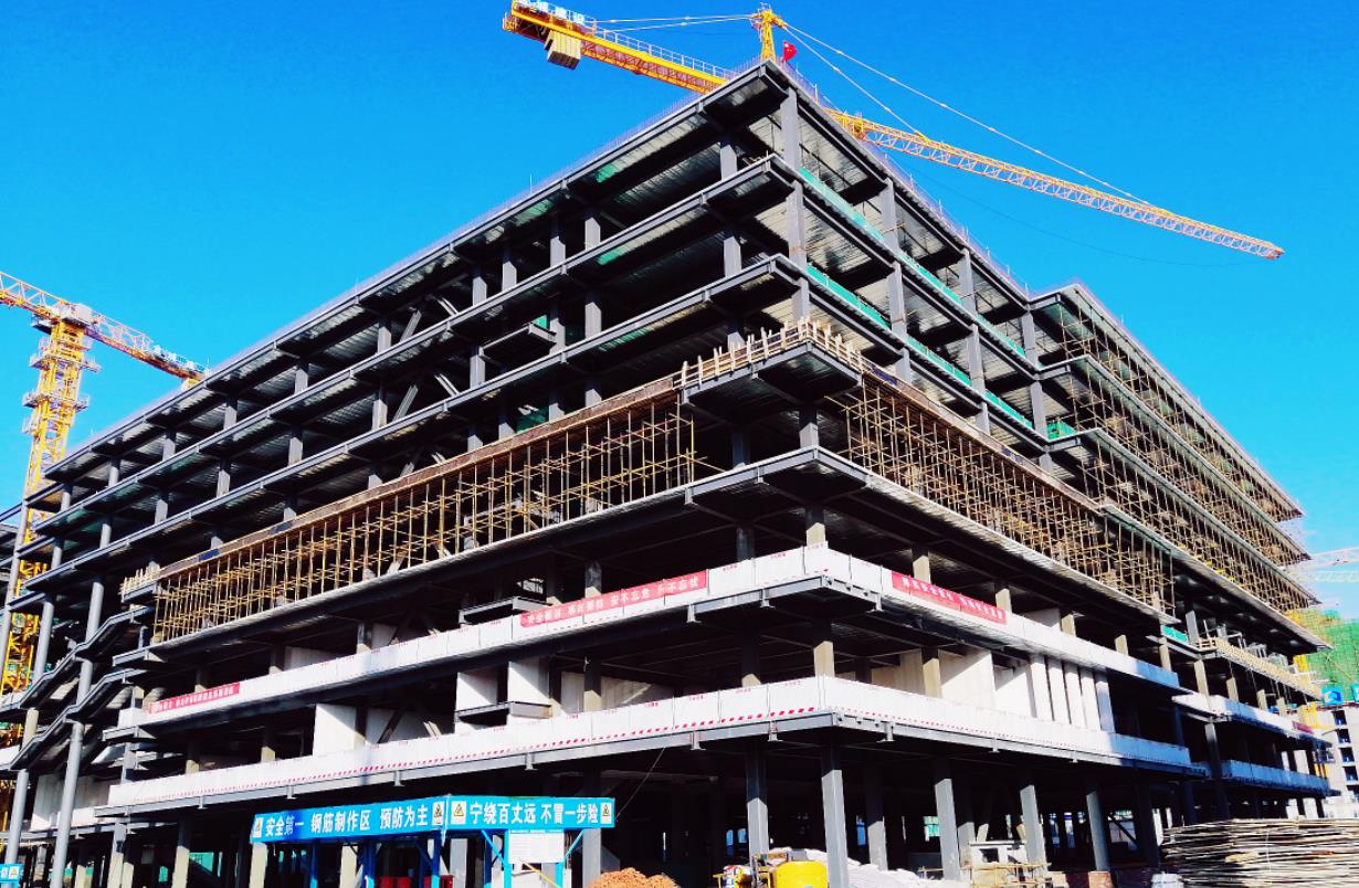 淄博職業(yè)教育產(chǎn)教實訓(xùn)基地項目是淄博市第一個全部采用裝配式建筑的大型公建類項目,本標(biāo)段建筑面積為104413㎡,結(jié)構(gòu)形式為鋼框架-中心支撐結(jié)構(gòu),基礎(chǔ)類型為筏板基礎(chǔ),地基形式為天然地基。綜合樓地下二層地上七層,建筑面積84662㎡。體育館、食堂、活動中心地下一層地上三層,建筑面積19751㎡,采用裝配式鋼結(jié)構(gòu)建筑,裝配率76%,達(dá)到裝配式建筑二星級標(biāo)準(zhǔn)。