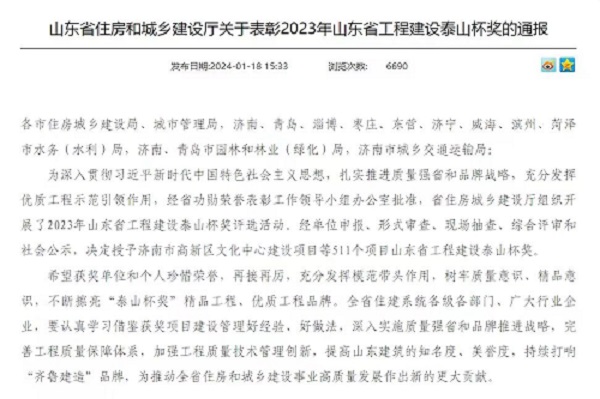 “泰山杯”是我省工程建設(shè)領(lǐng)域最高質(zhì)量獎(jiǎng)項(xiàng),主要突出建筑業(yè)發(fā)展、工程質(zhì)量等10大行業(yè)領(lǐng)域,獲獎(jiǎng)工程質(zhì)量代表了山東省工程質(zhì)量的最高水平,此次獲獎(jiǎng)是對(duì)公司項(xiàng)目建設(shè)工作的充分認(rèn)可。