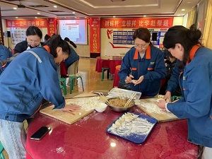 “幸福為餡·餃子飄香”包水餃比賽活動(dòng)在一片歡聲笑語(yǔ)中拉開(kāi)帷幕,搟面皮、包餃子……大家分工協(xié)作,各顯其能,一邊包著水餃,一邊聊天、交流,整個(gè)多功能大廳洋溢著熱鬧、溫馨的氛圍。手指翻飛間一個(gè)個(gè)白嫩圓滾的餃子便呈現(xiàn)在眼前,飽含幸福和溫暖的餃子拉近了心與心的距離,大家一起品嘗著自己親手包的水餃,分享著勞動(dòng)的快樂(lè)。