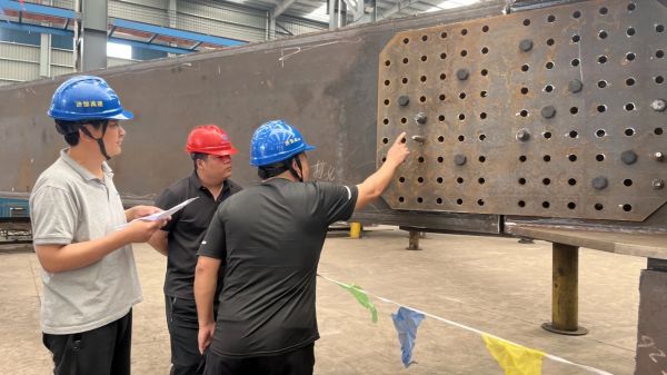 驗收過程中,業(yè)主、監(jiān)理、設(shè)計院、總包等單位對相關(guān)資料進行了查閱,并對實體尺寸、線型、焊縫探傷等指標進行了檢測,對制造工藝作出評價、提出建議,并一致同意通過驗收。