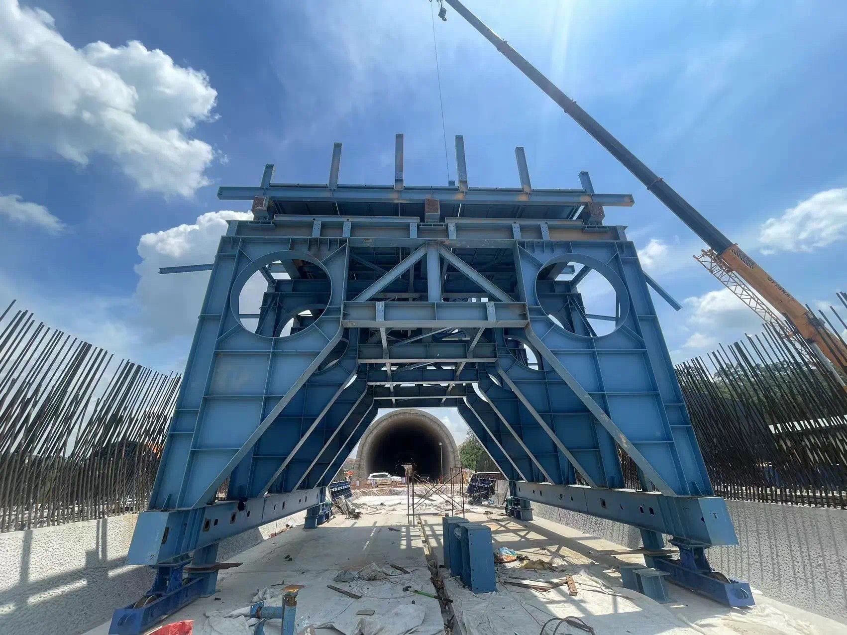 近日,公司首臺(tái)自主設(shè)計(jì)制造的全斷面鋼模板砼襯砌隧道臺(tái)車(chē)在廣湛鐵路站前十二標(biāo)項(xiàng)目經(jīng)理部機(jī)場(chǎng)隧道項(xiàng)目現(xiàn)場(chǎng)順利完成安裝調(diào)試并已正式投入使用,標(biāo)志著公司在隧道施工建造裝備領(lǐng)域取得了重大突破。