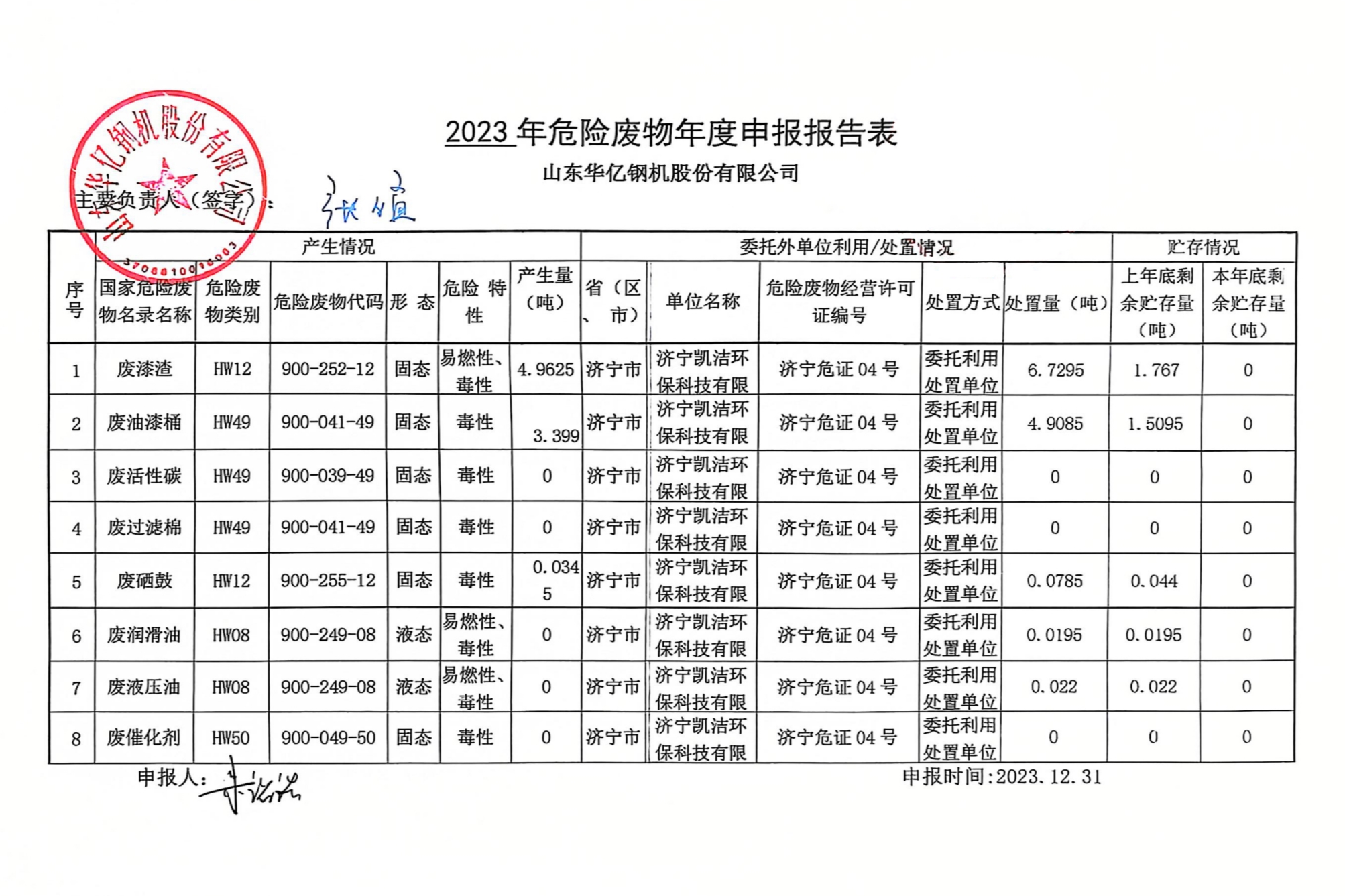 根據(jù)《中華人民共和國環(huán)境保護(hù)法》相關(guān)要求,現(xiàn)對(duì)山東華億鋼機(jī)股份有限公司2023年危險(xiǎn)廢物產(chǎn)生及防治信息依法進(jìn)行公示