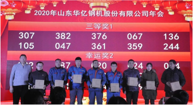 1月17日(臘月二十三)上午,山東華億鋼機(jī)股份有限公司召開(kāi)2019總結(jié)表彰暨2020新春年會(huì),年會(huì)主題是“凝聚華億,筑夢(mèng)遠(yuǎn)航”。山東華億鋼機(jī)股份有限公司董事長(zhǎng)張猛、總經(jīng)理孫鵬會(huì)上作了新春致詞,會(huì)議表彰獎(jiǎng)勵(lì)了一九年度做出突出貢獻(xiàn)的先進(jìn)集體和先進(jìn)個(gè)人,并穿插演出了精彩的員工自編自演的文藝節(jié)目及抽獎(jiǎng)活動(dòng)。