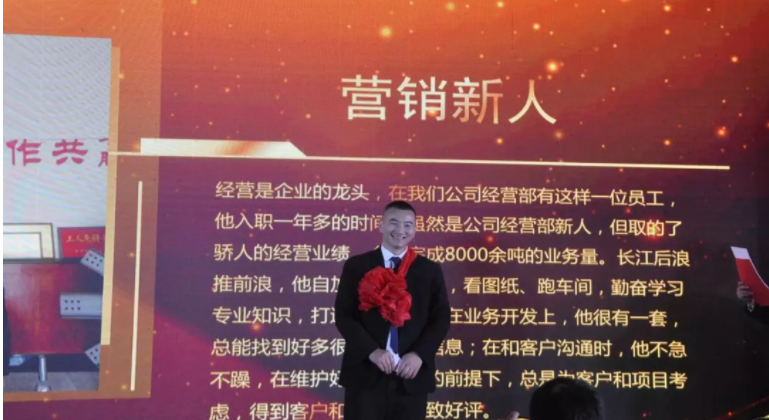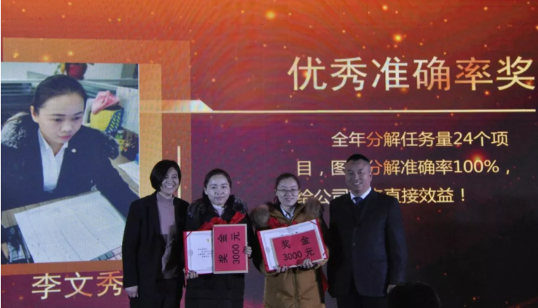 會(huì)上公司領(lǐng)導(dǎo)對(duì)做出貢獻(xiàn)的的員工作出表彰,并頒發(fā)優(yōu)秀團(tuán)隊(duì)獎(jiǎng)、先進(jìn)個(gè)人獎(jiǎng)、營(yíng)銷新人獎(jiǎng)、優(yōu)秀準(zhǔn)確率獎(jiǎng)、優(yōu)秀黨員獎(jiǎng)、車間管理先進(jìn)個(gè)人獎(jiǎng)。