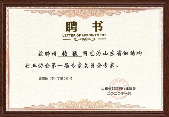 山東省鋼結(jié)構(gòu)行業(yè)協(xié)會(huì)聘書